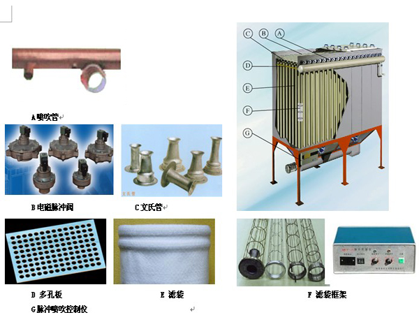 該產品綜合了分室反吹和脈沖清灰兩類除塵器的優(yōu)點,克服了分室反吹清灰強度不足和一般脈沖清灰粉塵再附等缺點,使清灰效率提高,噴吹頻率大為降低。該產品使用淹沒式脈沖閥,降低了噴吹氣源壓力和設備運行能耗。延長了濾袋、脈沖閥的使用壽命,綜合技術性能大大提高。